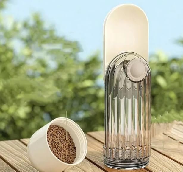Design Inteligente 2 em 1: Compartimentos separados para água e ração no mesmo corpo da garrafa.