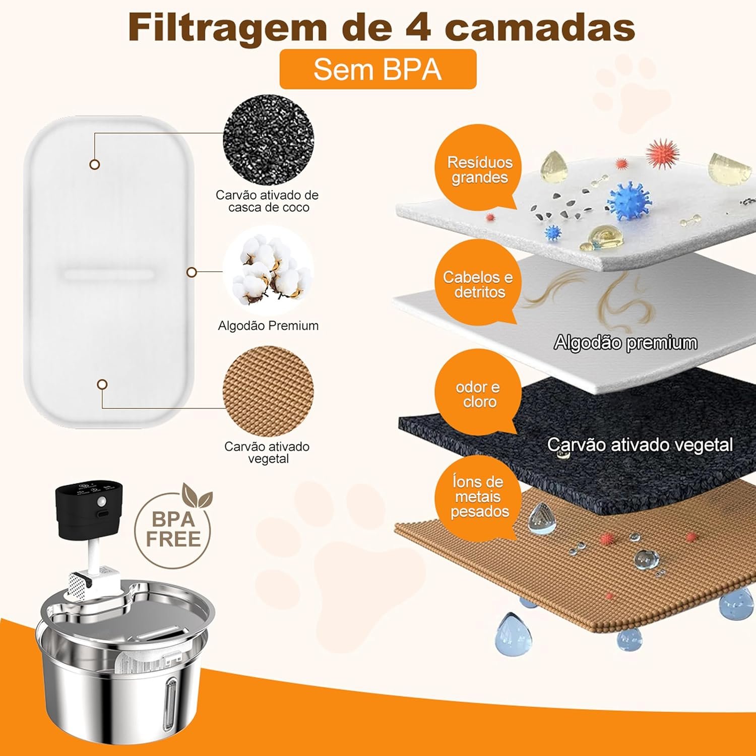 Proporcione o melhor para quem te dá amor incondicional. O Bebedouro para Gatos Fonte de Aço Inoxidável é a escolha definitiva para uma casa moderna e um pet saudável.