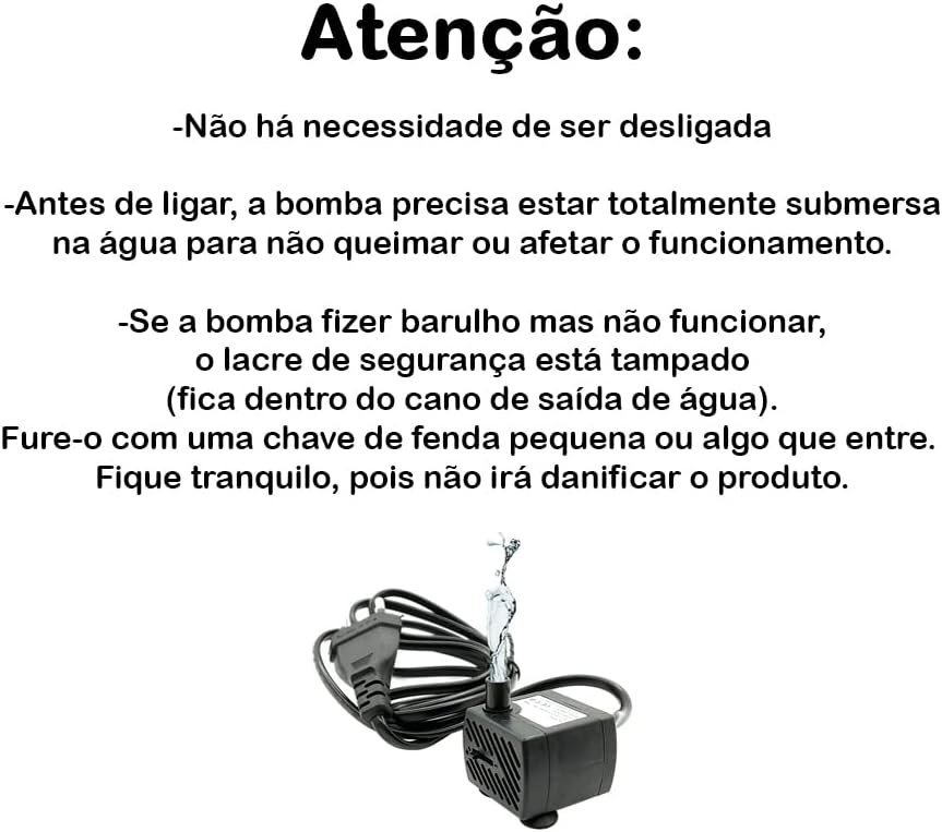 | Uso Indicado | Bebedouros Pet, Fontes e Aquários |