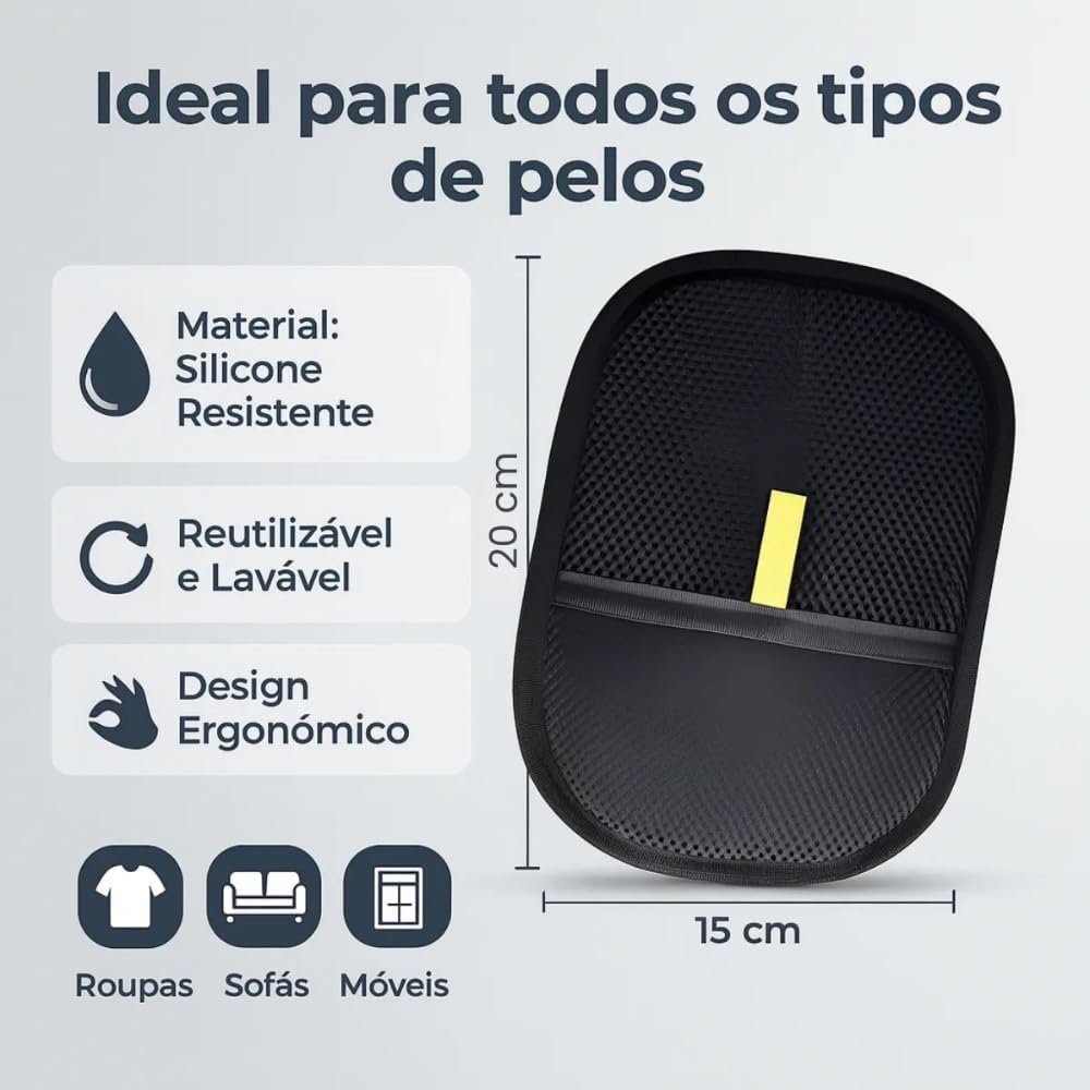 Tecnologia Eletrostática: Atrai e retém os pelos soltos com facilidade, sem a necessidade de fitas colantes.