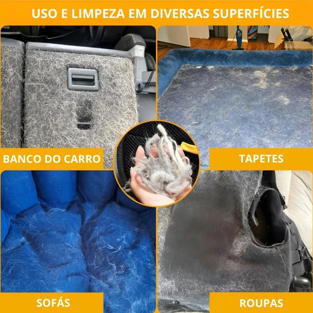 Versatilidade Total: Ideal para remover pelos de superfícies como sofás, poltronas, estofados de carros e roupas escuras.